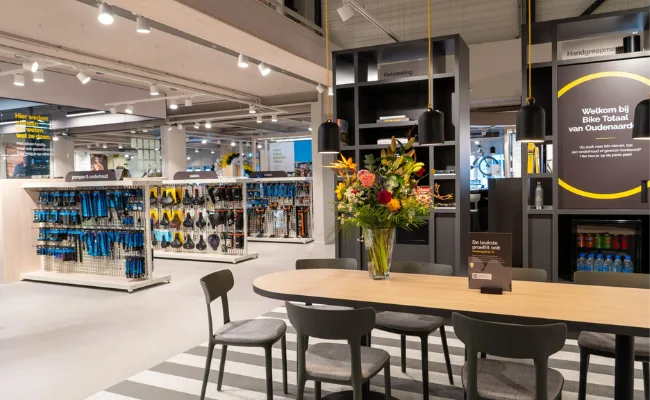De eerste pilotwinkel die volgens het nieuwe concept wordt gerealiseerd, is Bike Totaal Van Oudenaarden. Zie de foto’s hieronder voor de samenwerking tot nu toe!